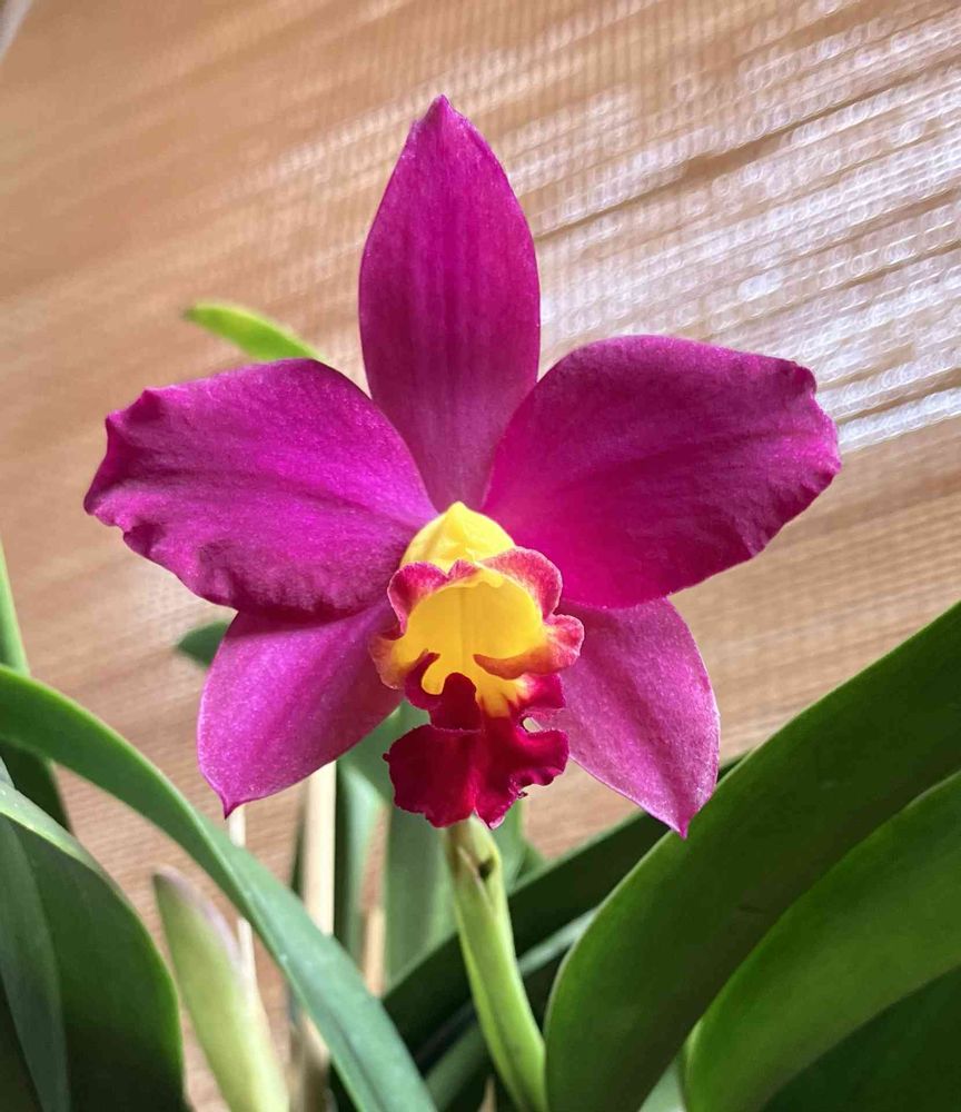 お花の性質より、見た目やお手頃価格、小さくて可愛いなどで選んでしまうので、年末に咲くかと思ったら、わぁ夏なのに咲いた〜ラッキー✨位のいい加減さです😅こちらはおそらく不定期咲のミニカトレアの種類と思われます🤔