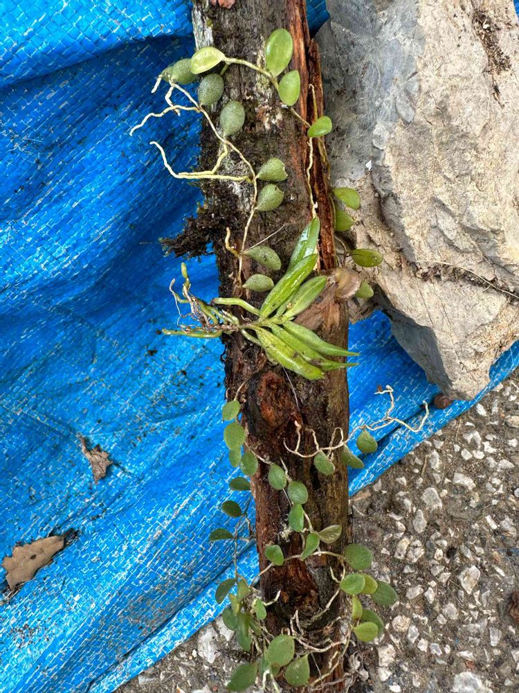 杉の大木には色々な着生ランが付いています。大風後に沢山落ちています