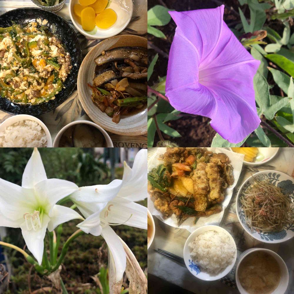 花は朝顔にアフリカハマユウ(ヒガンバナ