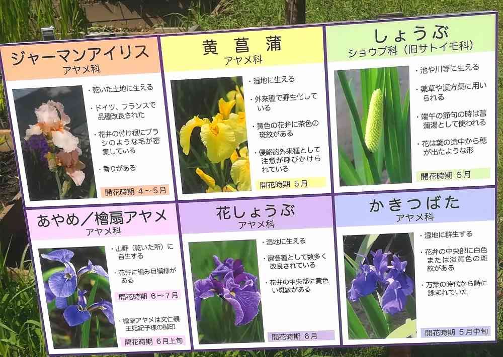 花しょうぶやアヤメ、かきつばたの区別の仕方が書いてありました。
