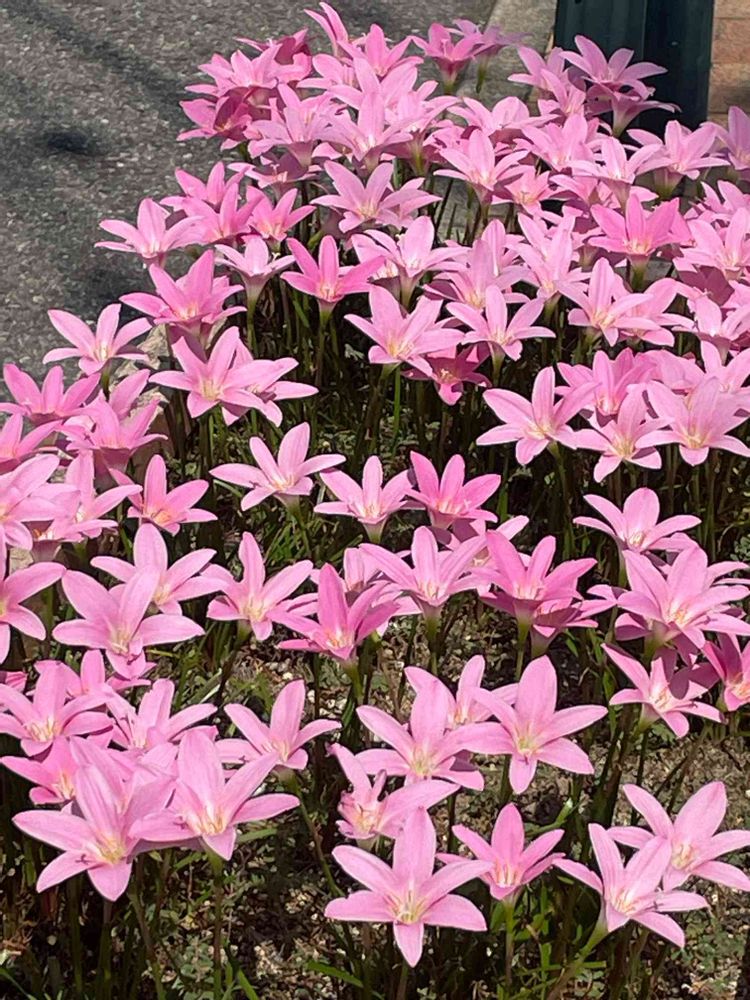 マンションの敷地を出たら、目の前のフラワーコンテナにサフランモドキが満開🩷