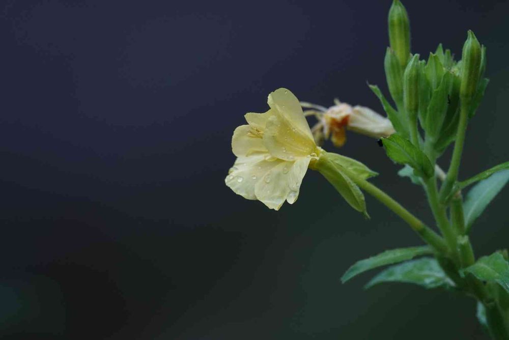 待宵草の仲間は月見草とも呼ばれ花は夕方から早朝。待宵草の仲間ではもっとも多く、咲く時期が遅く9月まで咲く。葉縁は波打たず波状の鋸歯。