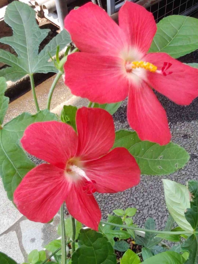 花友さんにいただいた種で蒔いてみました。ハイビスカスに似た真っ赤なお花に出会えて感激。