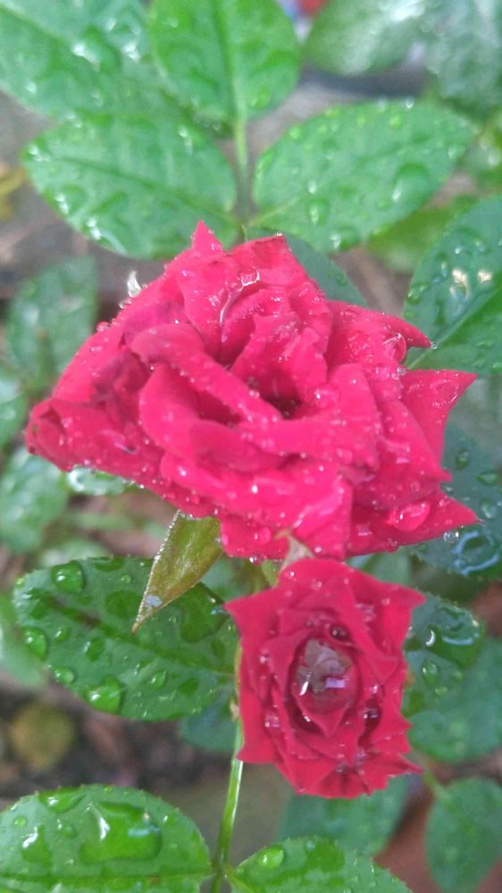 真っ赤な🌹の水滴💧でキラキラ✨🤩