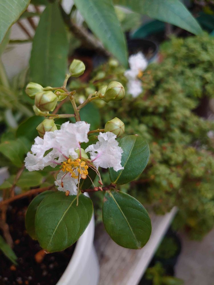 ずっと欲しかった百日紅😊🌱矮性で大きくならない苗があったのでお迎えしましたヽ(=´▽`=)ノ💚タイミング良く膨らんだ蕾がついていて咲きました(*´艸`)💕可愛いです💞