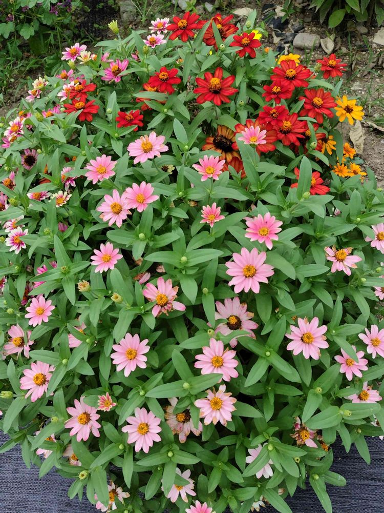 畑の端々に植えたジニア丸くモリモリです 三色可愛いてすね(๑>᎑<)>᎑<๑)ぎゅ〜❤🌸𓈒𓏸𓈒𓐍 🌸𓈒𓏸𓈒𓐍