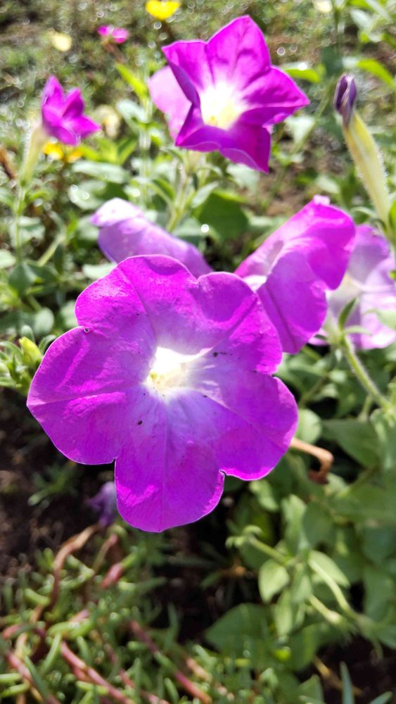 こぼれ種から発芽したペチュニアが、たくさん咲いています。