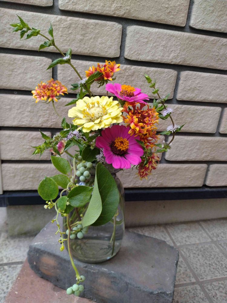 暑い中咲いている庭の花を工夫して生けていて、勉強熱心です👏👏👏👏