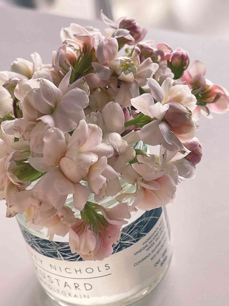 鳥に鉢を倒され、折れた茎をジャムの小瓶へ