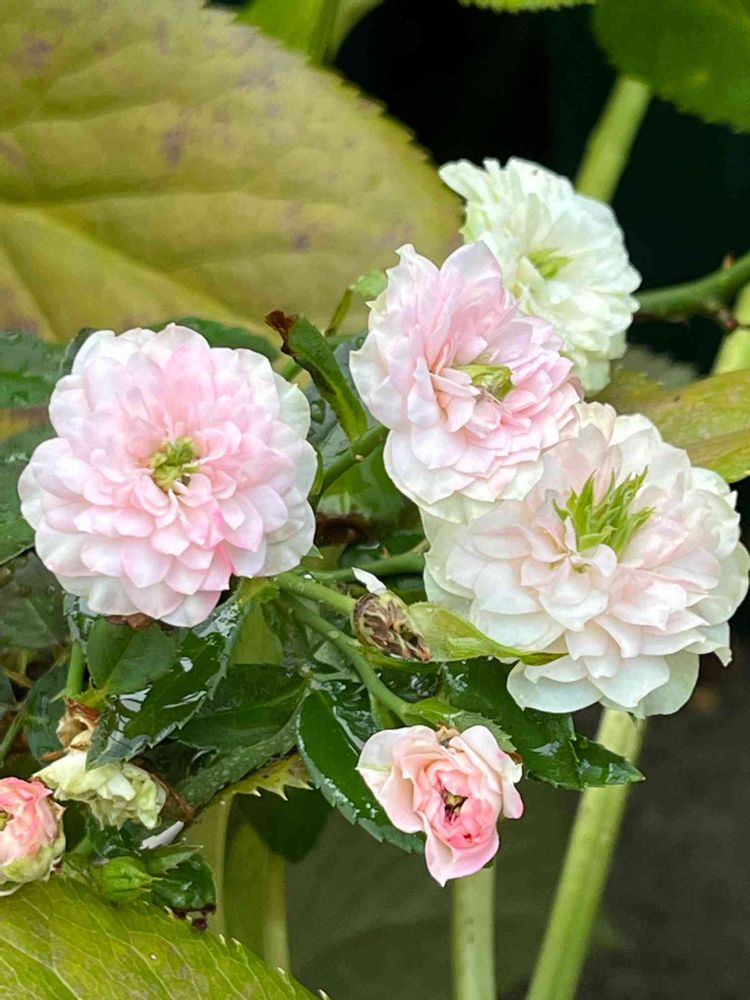グリーンアイスとは思え無いくらいの薄ピンクの可愛い色の薔薇に変身してるね~中心の緑のは雄蕊や雌蕊が退化したものらしいよ~私の大好きなマダムアルディとかにグリーンアイがあるんだけど、、、🥰💚