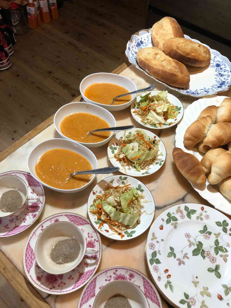 カフェオレ、インスタント,キャベツ、人参、ビストロドレッシング,ベニズワイガニのビスクの投稿画像