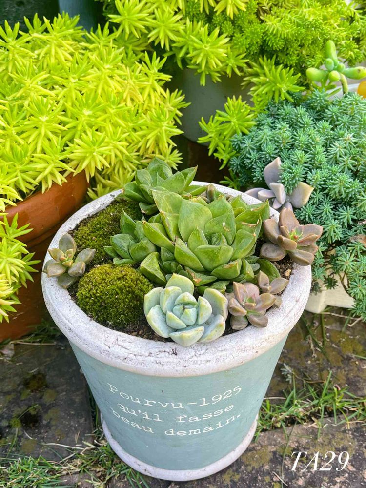多肉の寄せ植えも半分以上がお見せできるような状態ではないので今朝、リハビリも兼ねて一つだけ仕立て直しました!