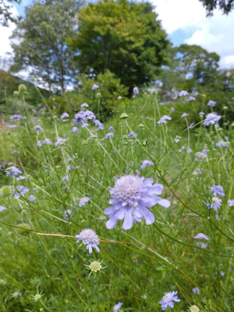高原や山の中で群生して淡い紫色💜のアクセントで彩るマツムシソウ、素敵な山野草ですよねえ💕