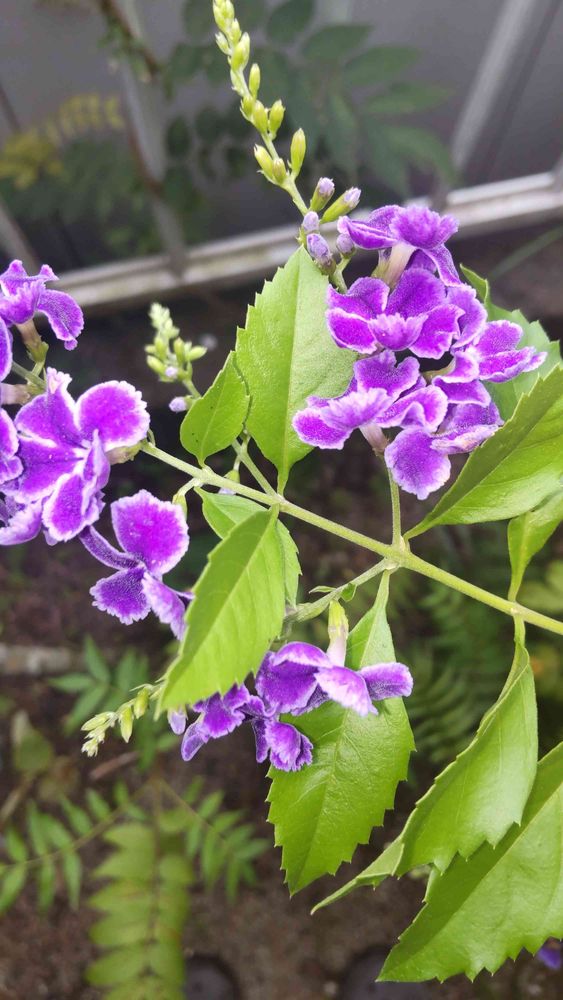 デュランタ💜まだ2、3個しかさいていませんが、今年は沢山咲きそうです。枝の先の方に蕾が付いています。💜💜💜🌿