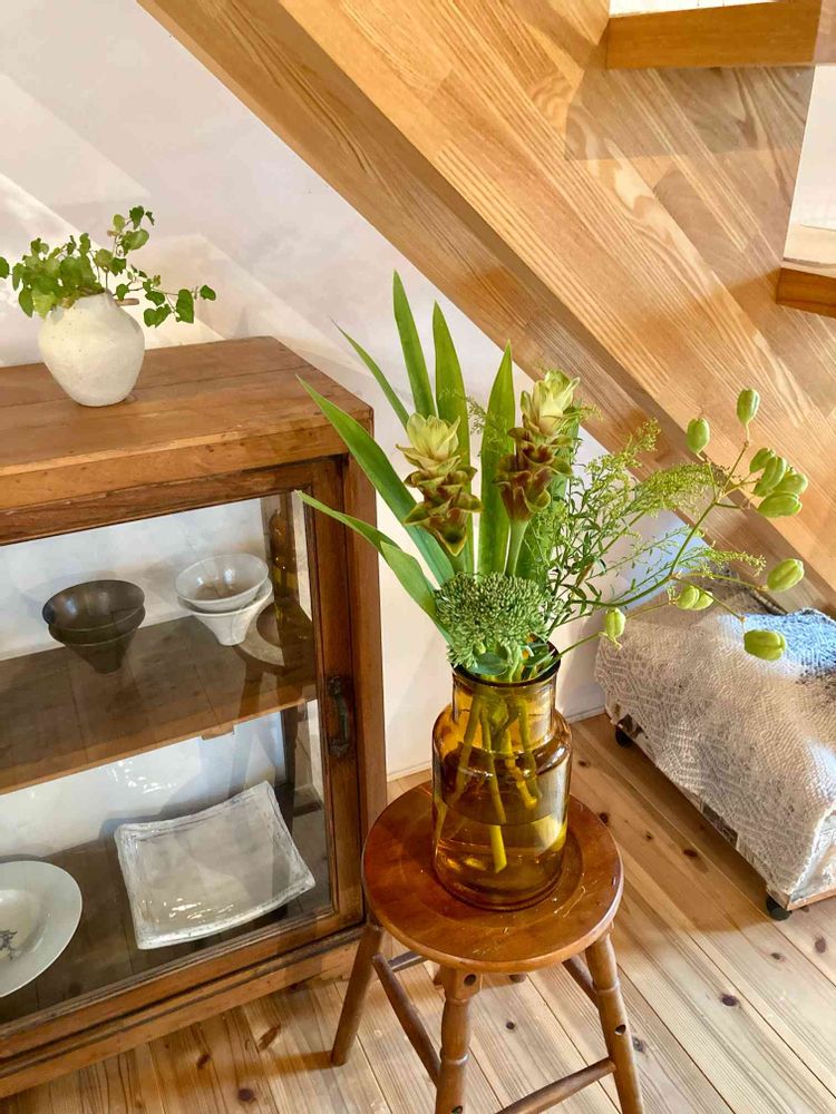 少しの空間で素敵に飾る! 花とグリーンのある生活にはラダーシェフルがおすすめ。