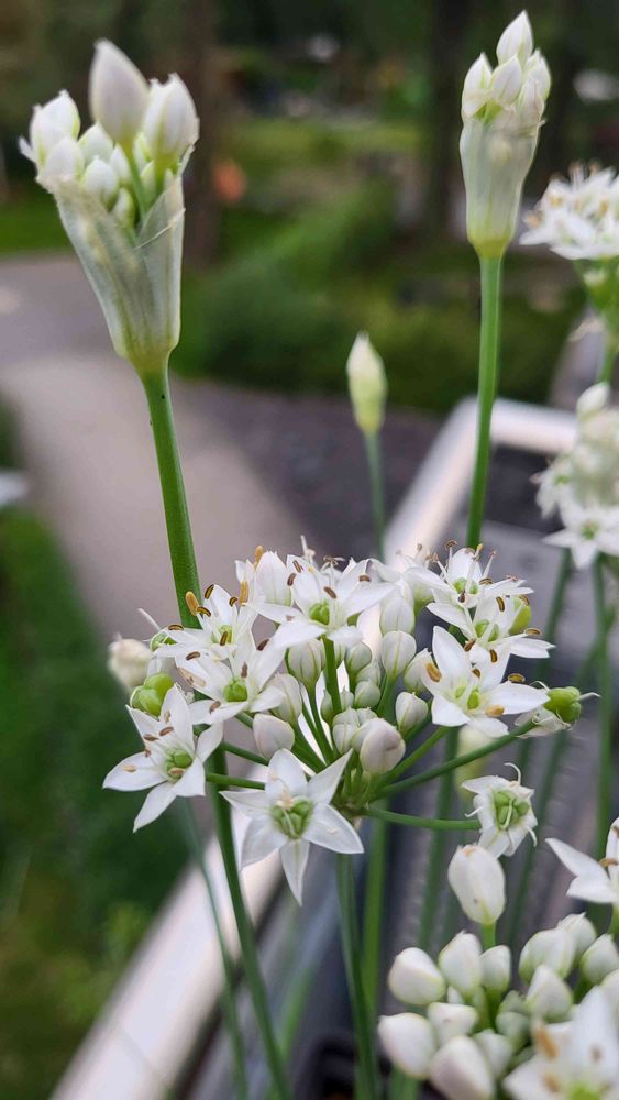 旅行先から帰ったら、ニラに蕾がついてしまっていて、最近、咲いたところです🤗