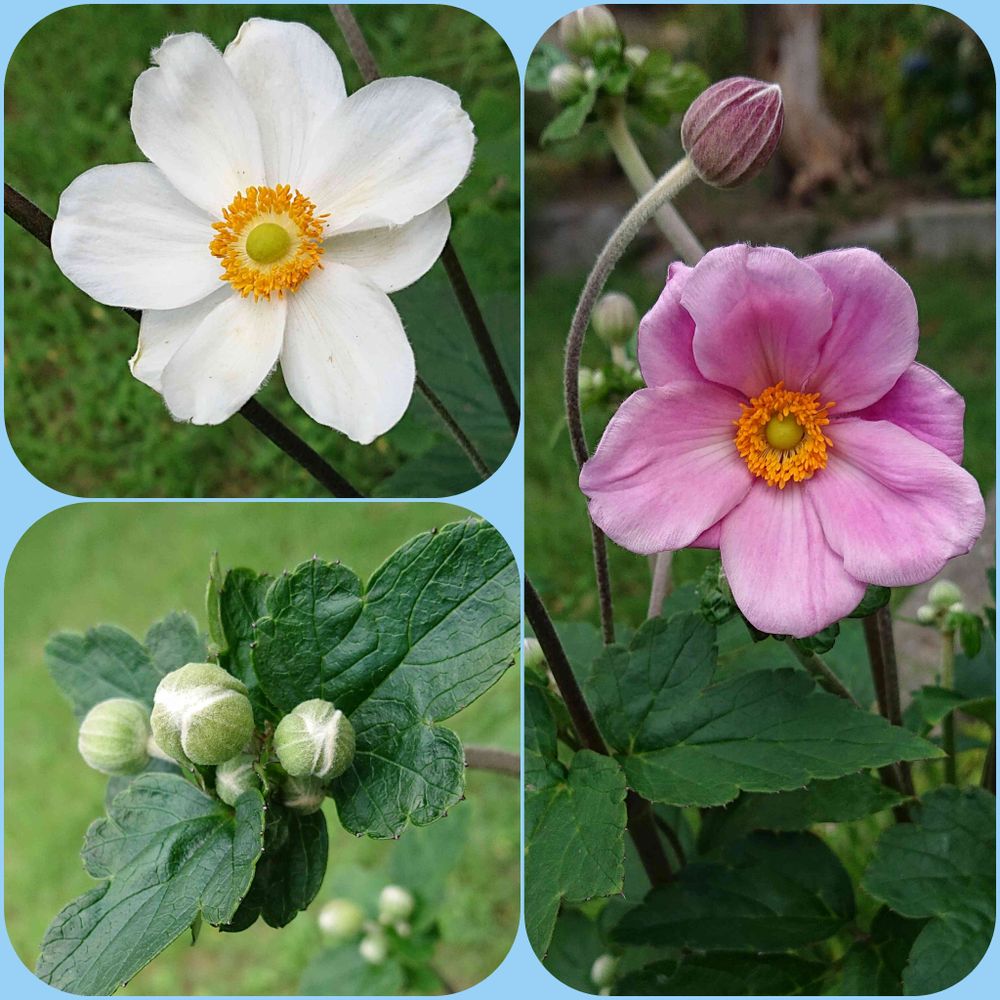 暑い中で秋の知らせのような秋明菊が咲きましたよ😁