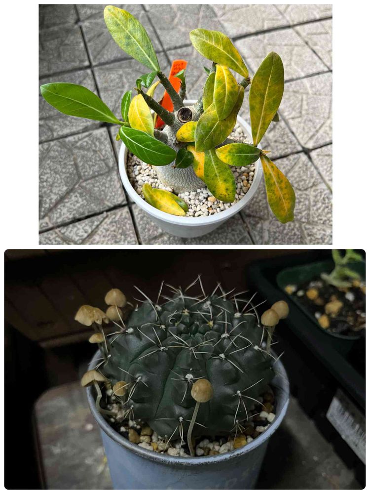 そしてお外組の多肉のいくつかにまさかのキノコ出現💦
