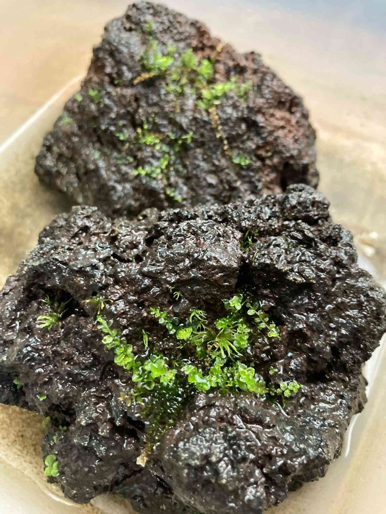 1月8日に溶岩石にコケの鱗片をパラパラ