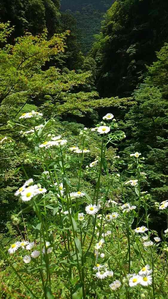 四国徳島の山、緑色のグラデーションの中、白いヒメジョオンが新鮮に見えました😍かわいい花🌼