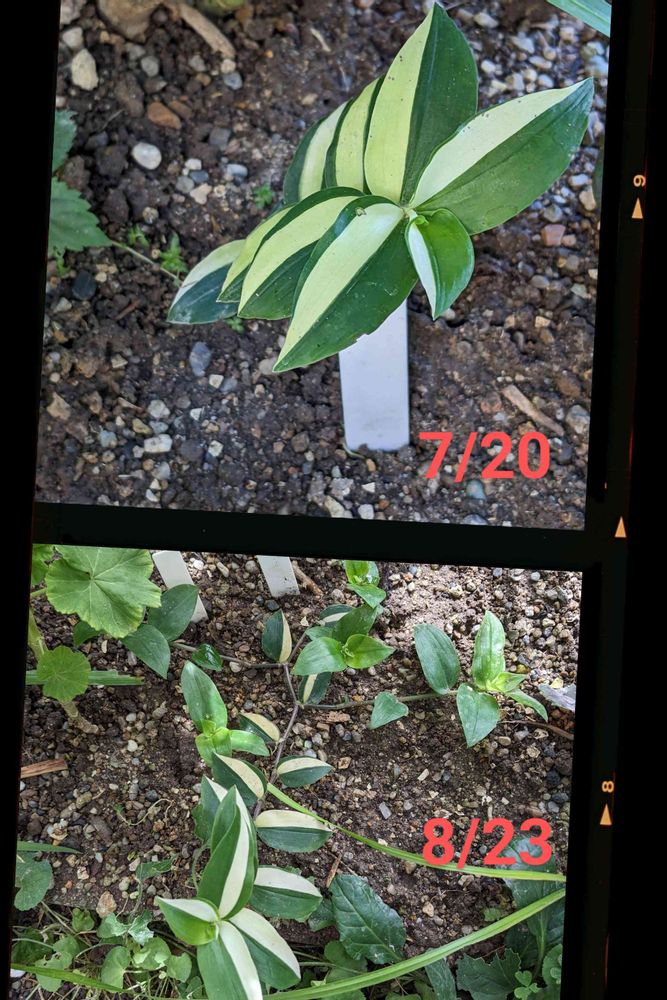 斑入り葉 面白いですよね私も好き💕☺️ でも新しく出てきたのは緑色😆 ホトトギスですか? まだよくわからないので花が咲くまで待ってみますね🤗🪴