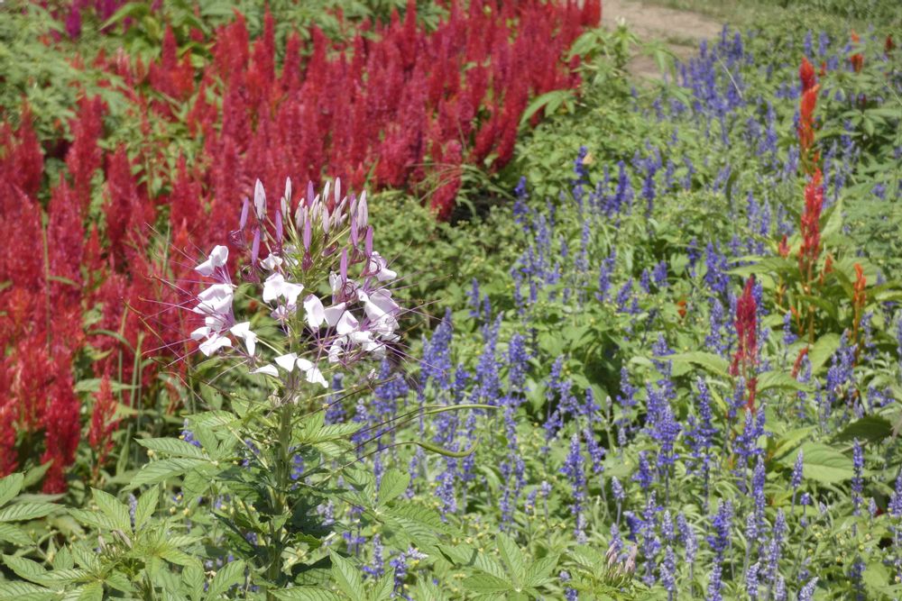 真っ赤なケイトウ❤とクレオメ🩷と。