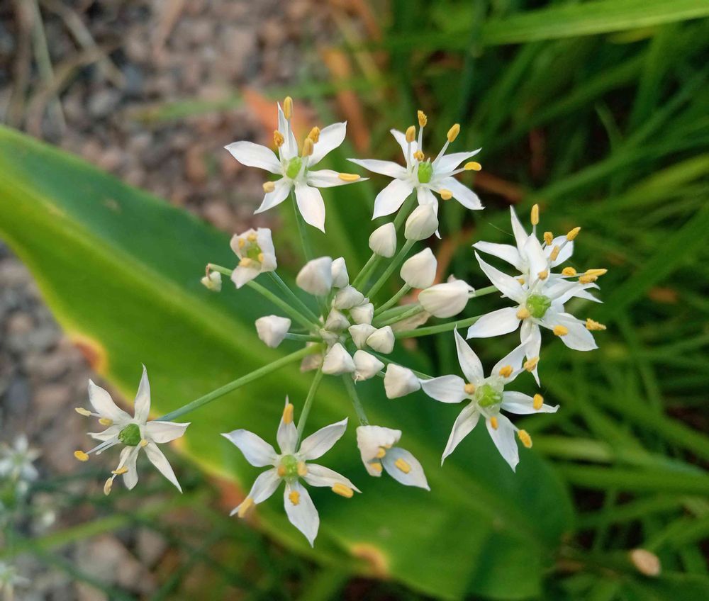何年も前に実家の母が勝手に撒いていったニラが毎年、ちょびっとだけ花が咲きます。食べられるほど、沢山の葉っぱは、でないんですけどね💦