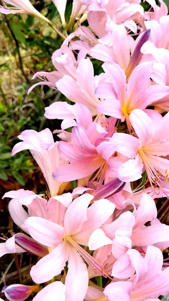 薄いピンク色のナツズイセンが 並んで咲いていて きれいでした😀