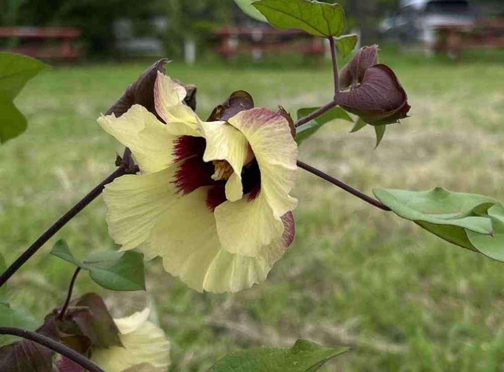 白い綿ではなく茶色の綿『茶綿(和綿)』の花です。