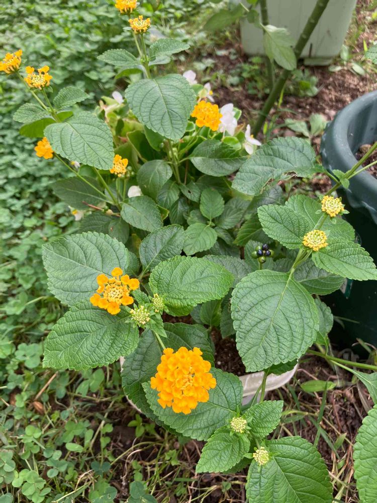 ランタナの花が咲きました。白のベゴニアとプランターに植えたのですが、はみ出すくらいの勢いです♪