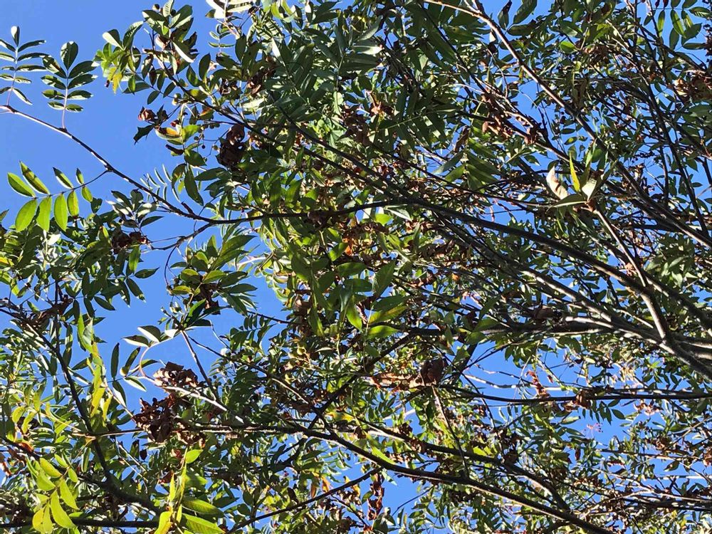 春からずっとワサワサ元気だったナナカマドの葉っぱが、猛暑になってからこんな風になりました😱😳
