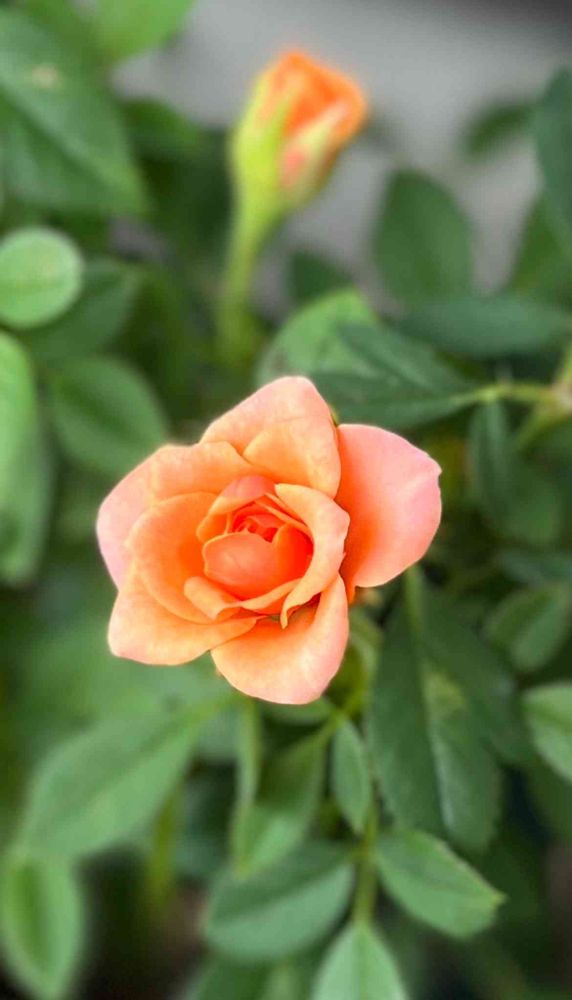 マンダリンオレンジのミニ薔薇が咲いてきました。