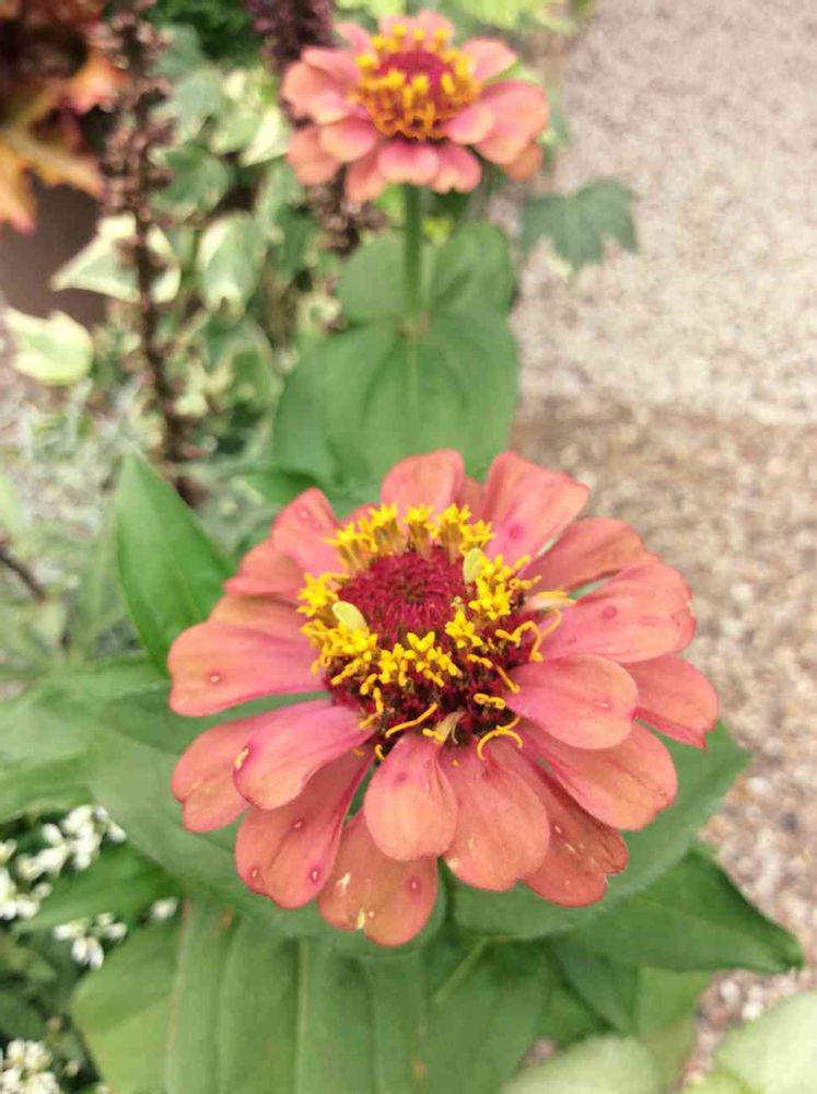 先日の寄せ植えに入れたジニア(百日草)🌼