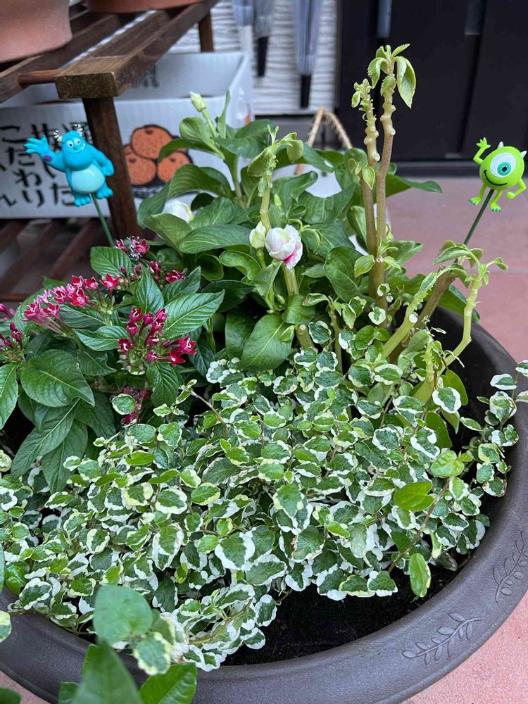以前寄せ植えした時に後ろがスカスカだったのでビンカMIKIを追加してみました🤭