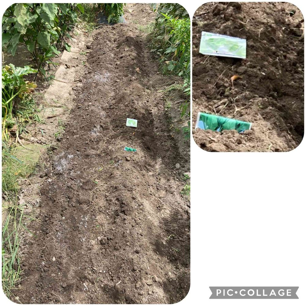 まだまだ暑い日が続いていますが8/22に蒔くところだけ耕して石灰と肥料をあげて、サラダ白菜とほうれん草の種蒔きしてみました🌱周りは写っていませんが草だらけです(暑くて暑くて畑は草ボーボーなんです😵どうしよう😮💨😮💨)