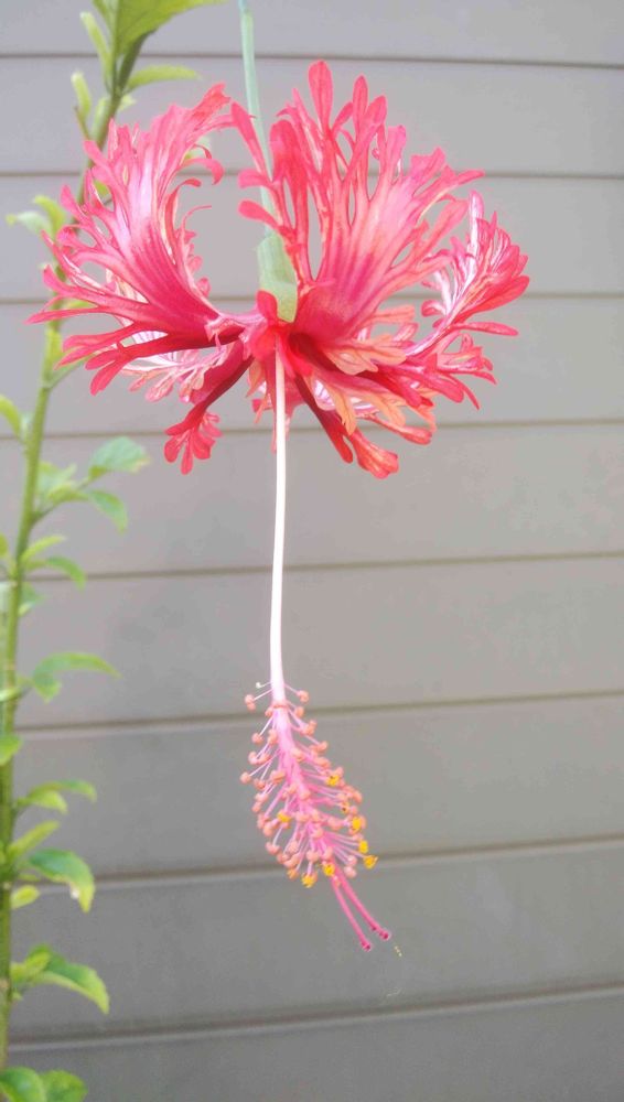 ハイビスカスのお花より、きゃしゃな感じで…吊り下がって咲いています!🌺🌿風に揺れている姿は、ホント風鈴のようですよ~!🎶😂