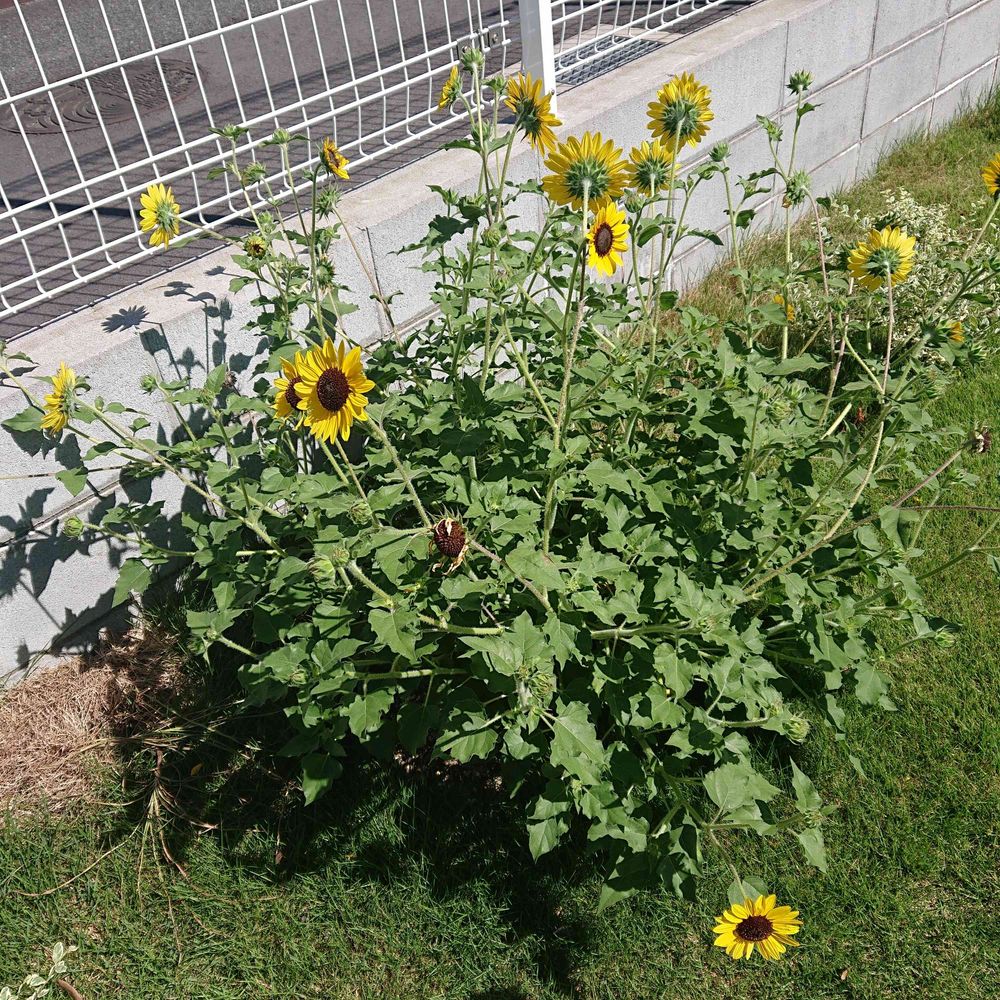 広いスペースやとひまわりも悠々と気持ちよさそうー🌻
