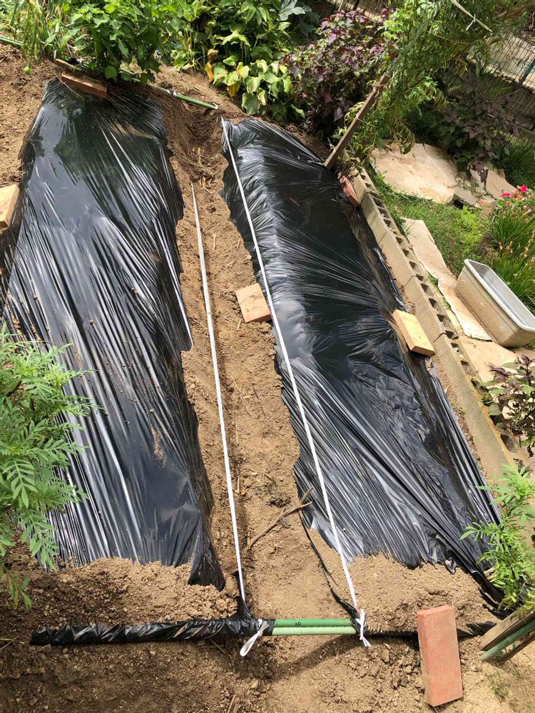 そして、黒マルチをピンと張って、2週間ほどおけば