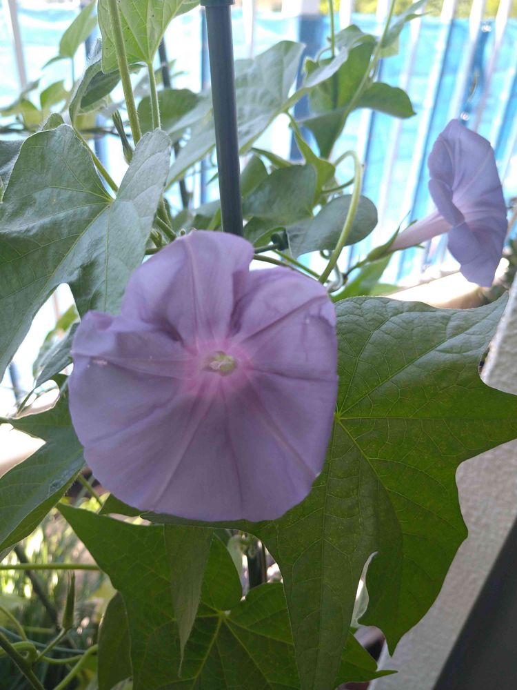 朝顔を育てたのは子供が夏休み前に持ち帰った枯れ気味の朝顔以来なので双葉🌱のときから朝に晩にと水やりに励み今か今かと待ち望んでたので咲いてくれて嬉しかったです。