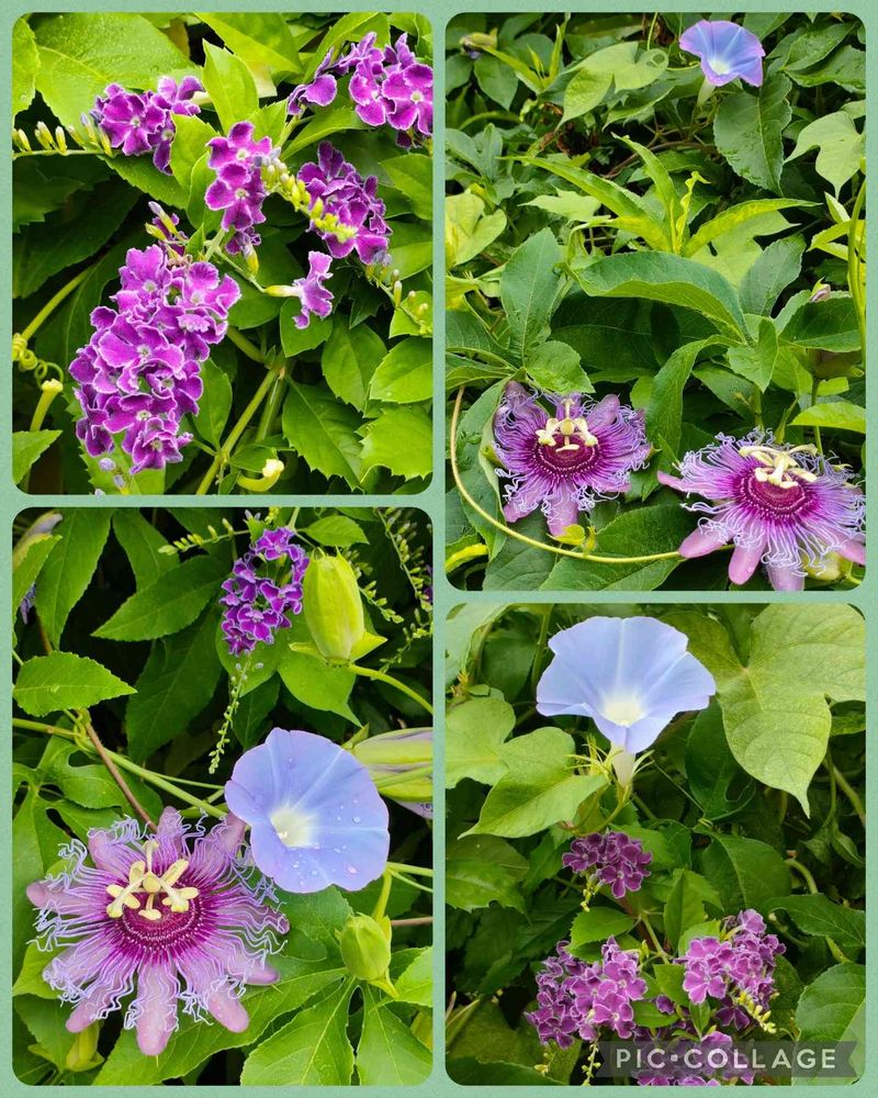 かずこさんの小さな庭,デュランタ,トケイソウとあさがおの投稿画像