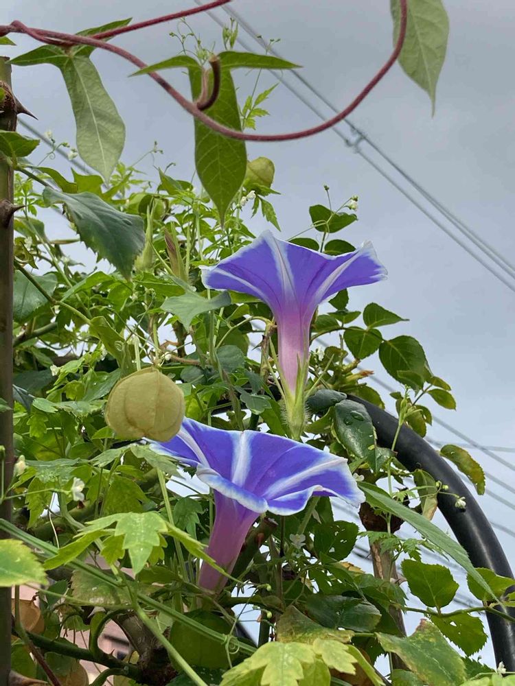 わあ~朝顔とフーセンカズラがいい感じだね✨💕😍