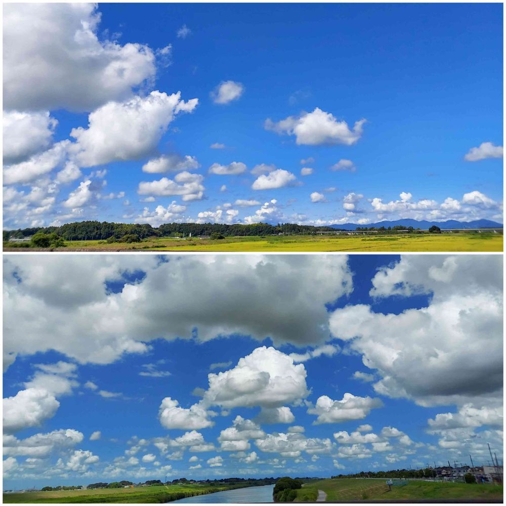 夜分遅くなりましたが…お出かけした時の車窓🚙💨からの青空💙と雲☁️がとても印象的でしたので投稿しておきます😅