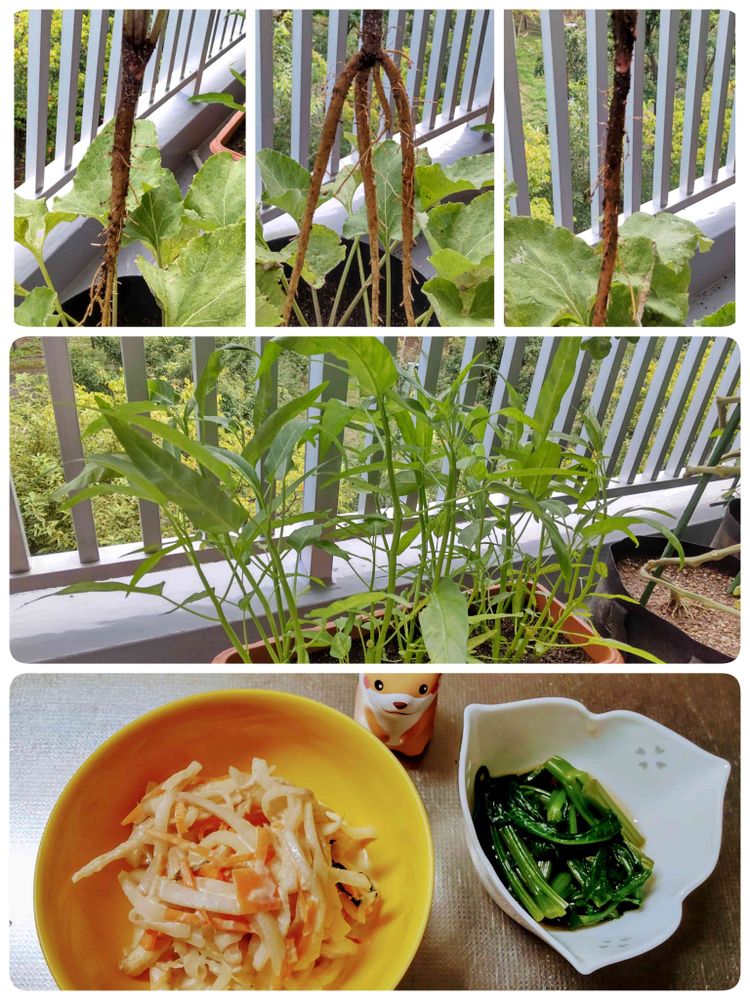 サラダ(ゴボウ+α)とおひたし(エンツァイ)になりました😋🍴💕