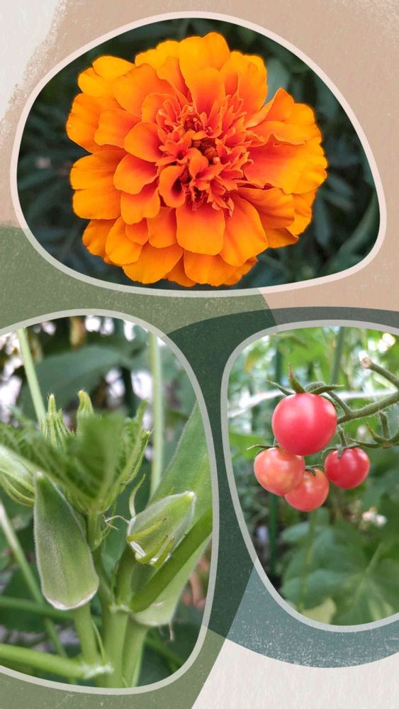 野菜の近くに植えてあるマリーゴールドさん❣️