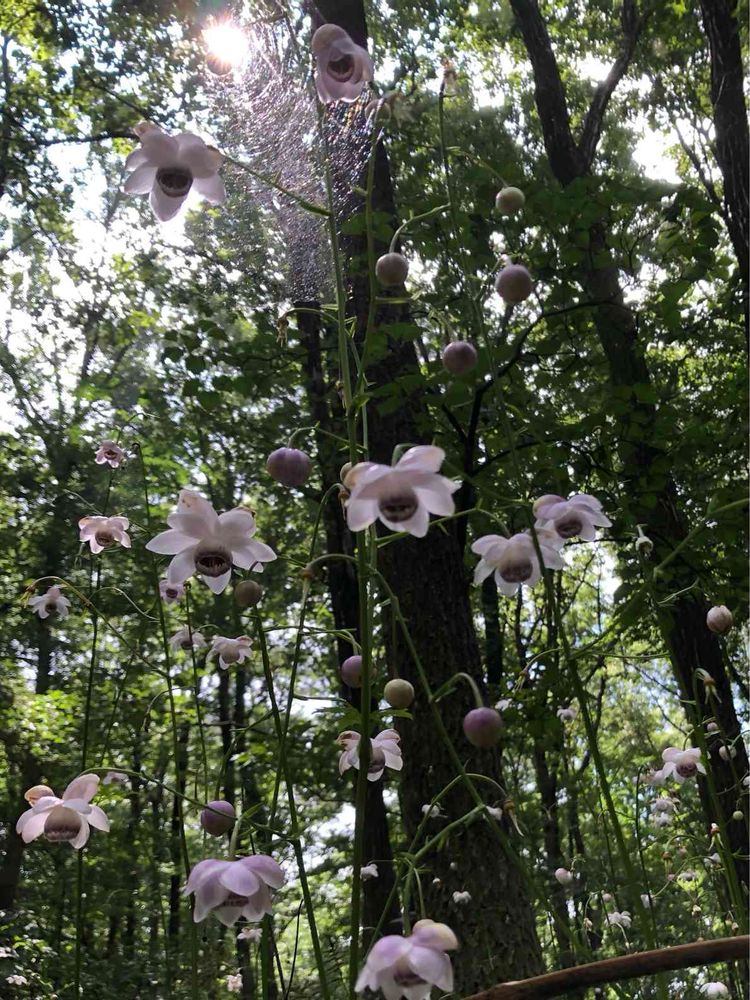 美しいレンゲショウマの花と蜘蛛🕷️糸とのコラボが美しい光景を魅せてくれた。😊👍🎶📸