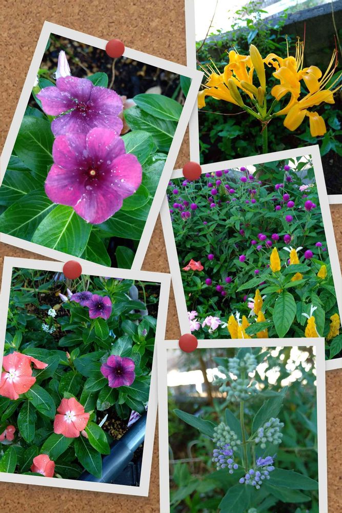 最近の花壇のお花でスマホが勝手にコラージュしてくれました🥰