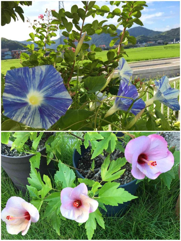 涼しげ💙で、ピンクのハイビスカス🌸さんとのコラボ可愛い(* ^ ^ *)🎵