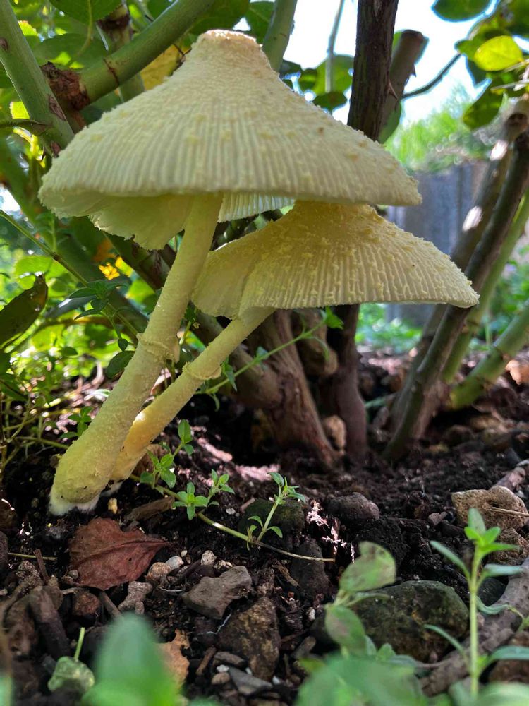 つるバラの根元に生えていました🍄