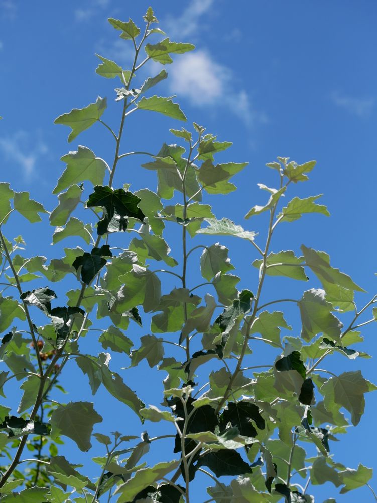 帰って調べてみると、「ギンドロ」。 別名:ハクヨウ(白楊)、ウラジロハコヤナギ。