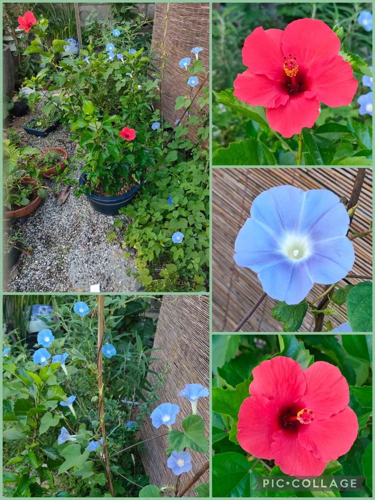 かずこさんの小さな庭,あさがおとハイビスカス,自宅の投稿画像